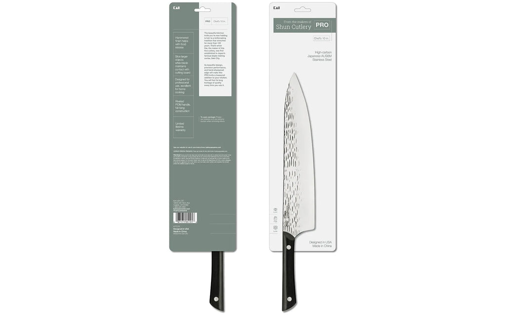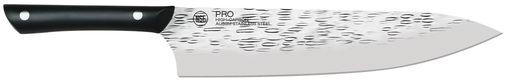 The 10-in. PRO Chef's Knife is the choice for cooks who prefer a longer knife. It gives you more cutting leverage and the ability to slice larger foods while maintaining blade contact with the cutting board. Yet this handsome knife is an ideal choice for slicing and dicing just about anything in the kitchen. But even though this is a large knife, the thin blade keeps the weight down and ensures that you can use the PRO longer without tiring.