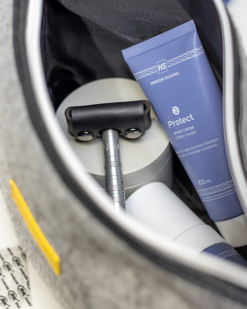 Made from genuine leather with secure snap closures, the leather head cover shields the razor head and blade from outside contact while still allowing the razor to air-out between uses. Perfect for tossing into a dopp kit or drawer without worry.